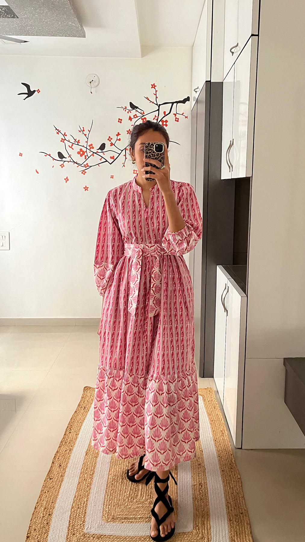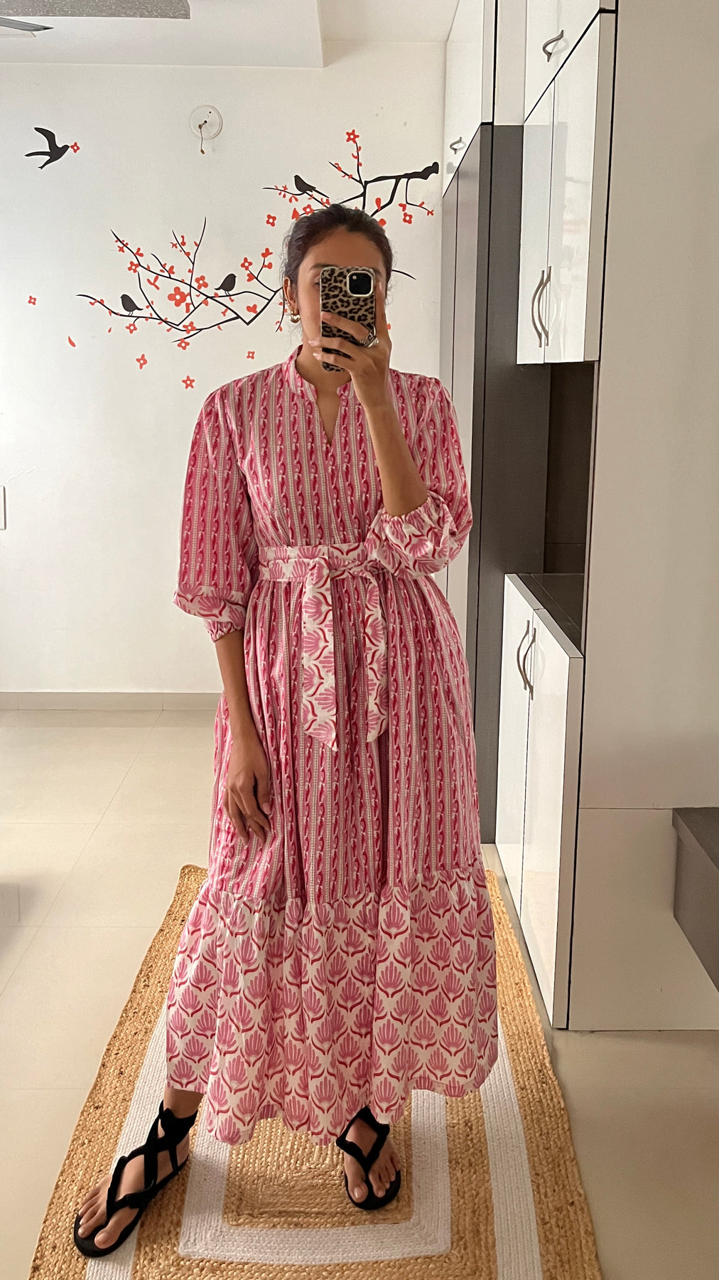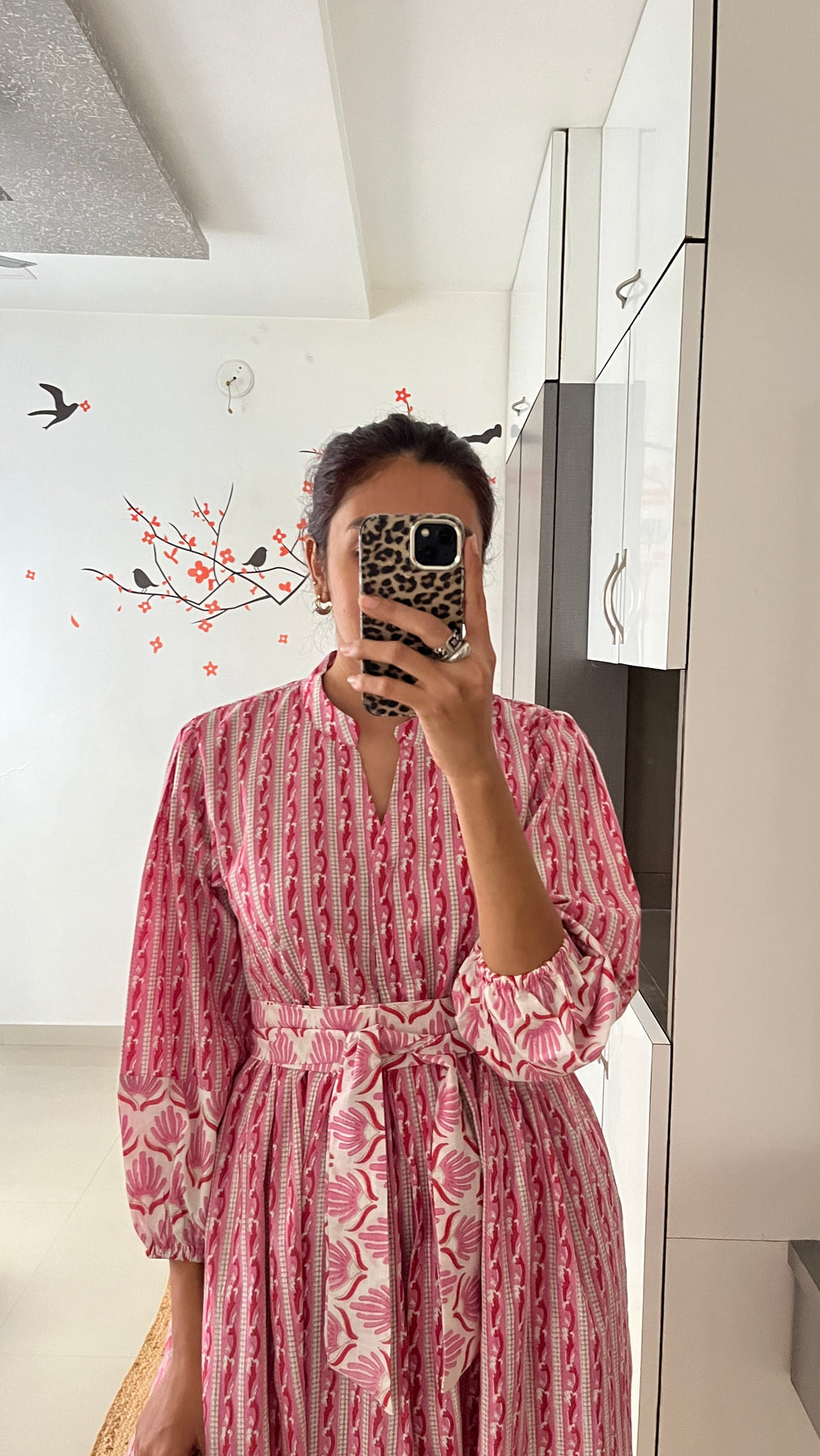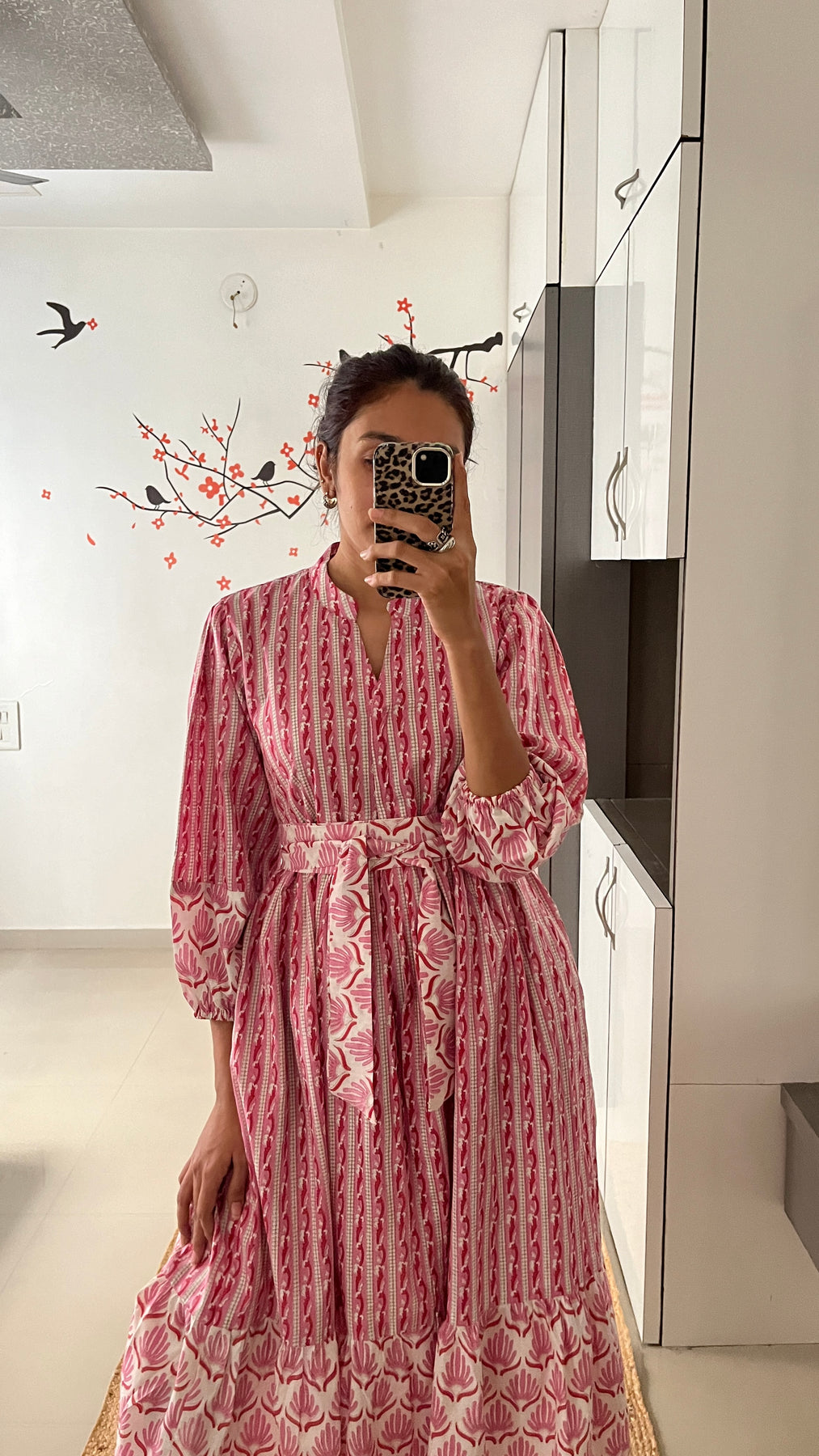 Natural-dyed colours might bleed during the first few washes or rub against the skin & other light-coloured garments. In the artful process of hand block-printing, embroidery work and stitching, variations are likely to come into existence. These irregularities are the hallmark of all handmade products and give each style a unique identity.