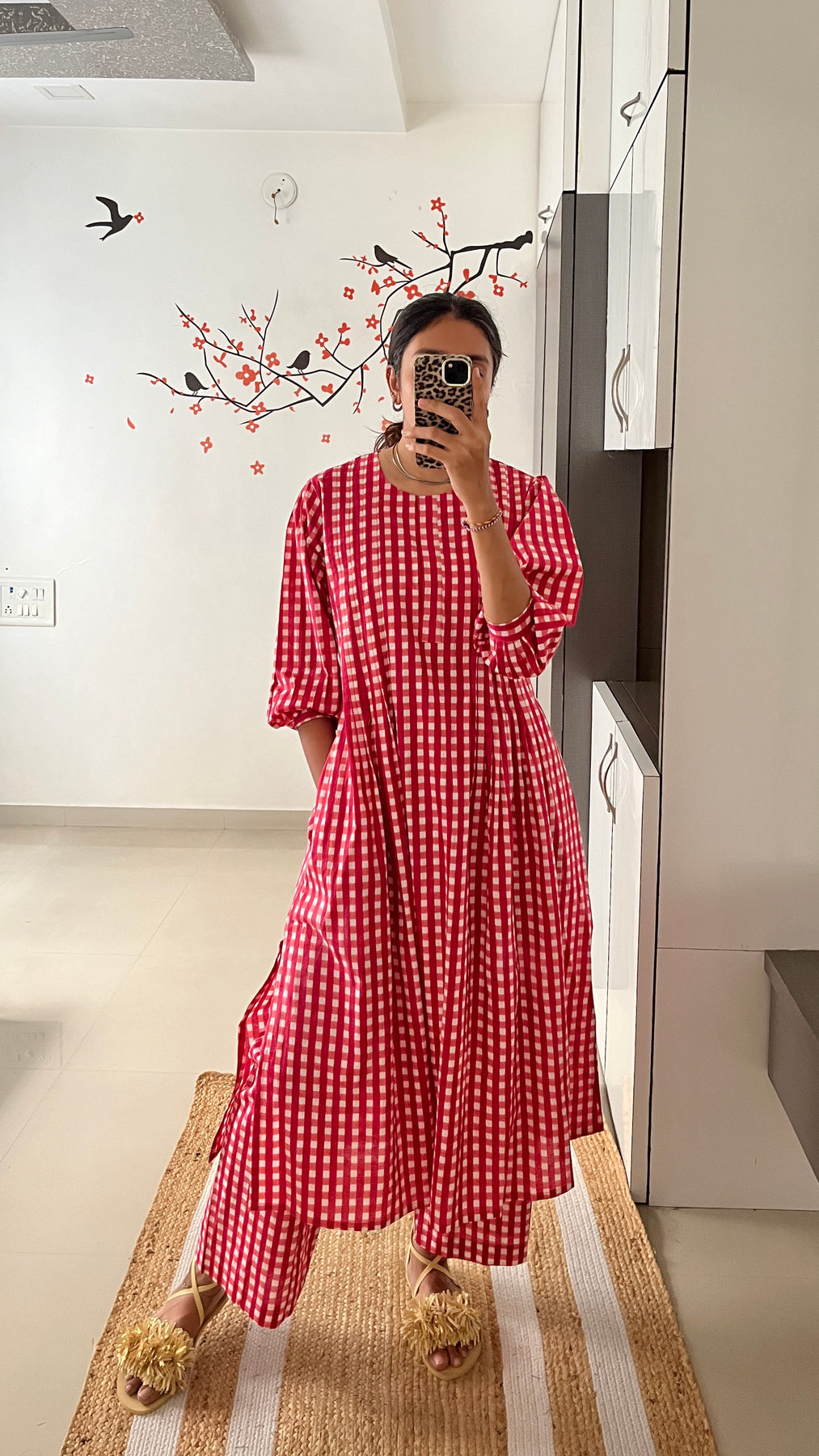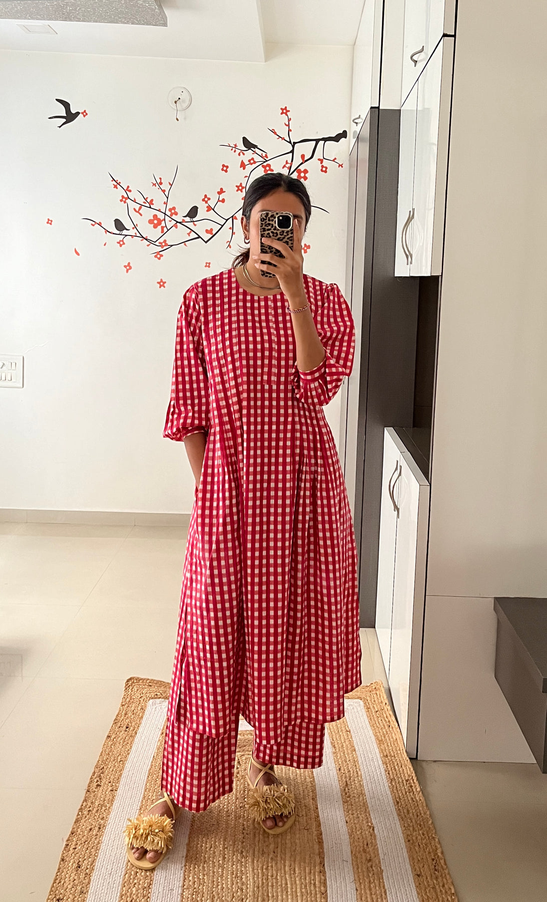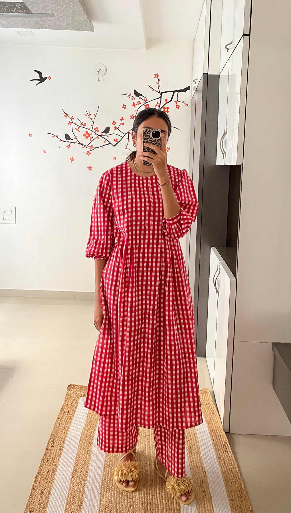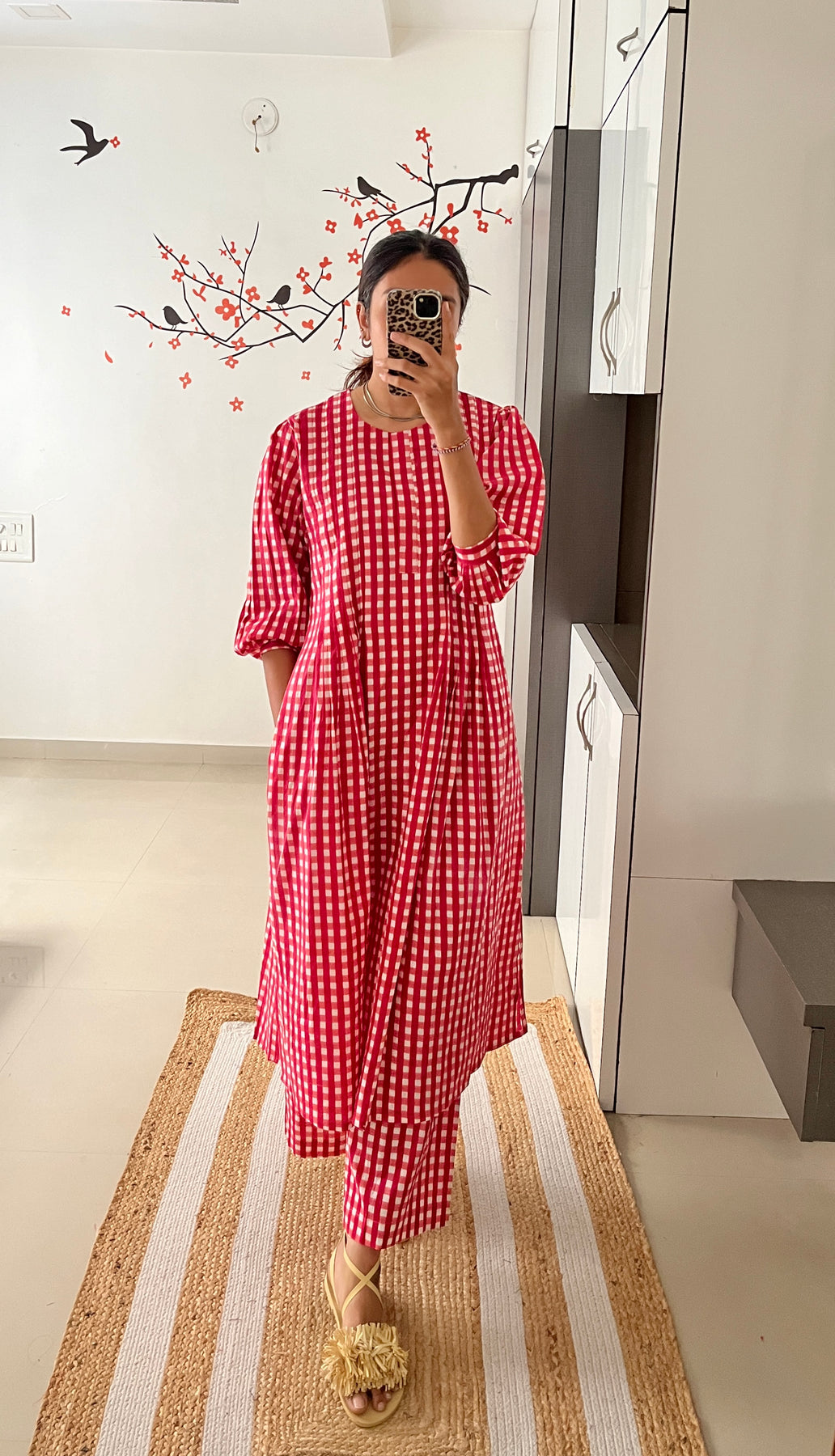 Natural-dyed colours might bleed during the first few washes or rub against the skin & other light-coloured garments. In the artful process of hand block-printing, embroidery work and stitching, variations are likely to come into existence. These irregularities are the hallmark of all handmade products and give each style a unique identity.