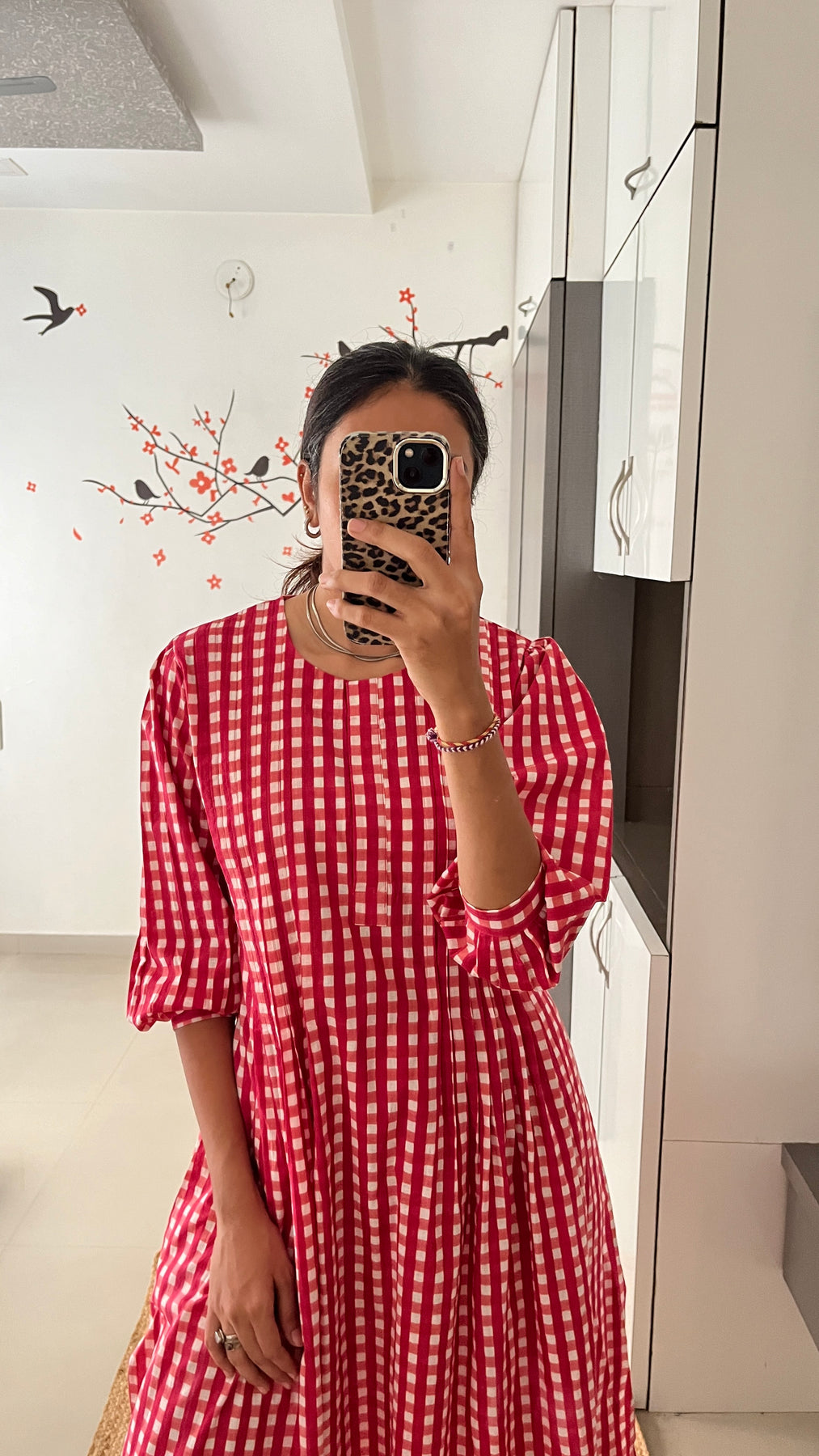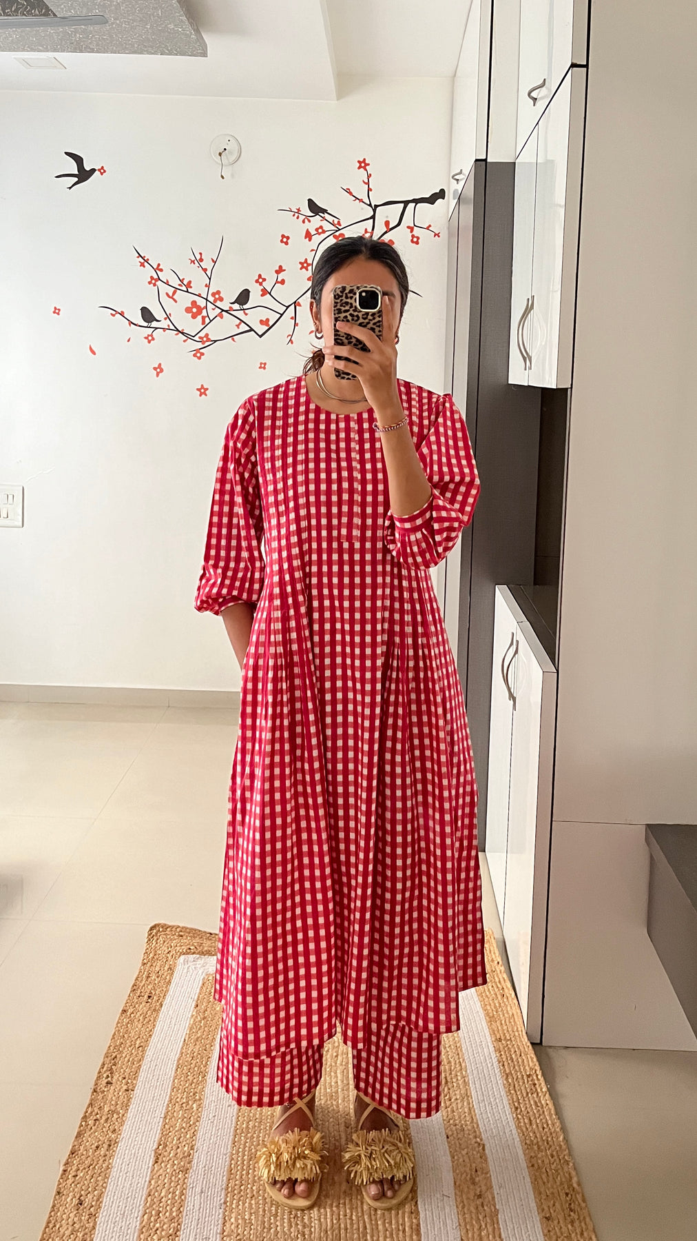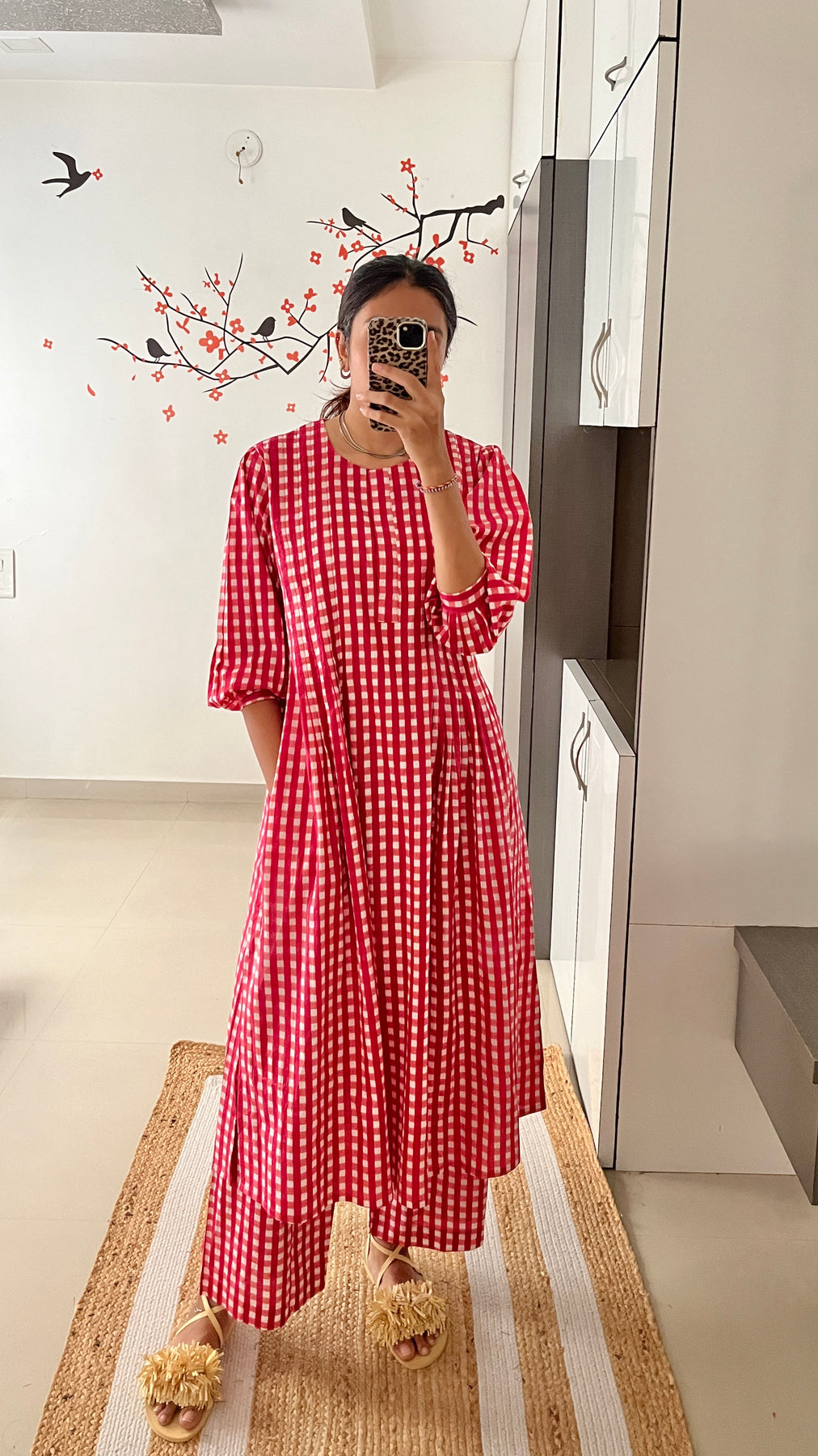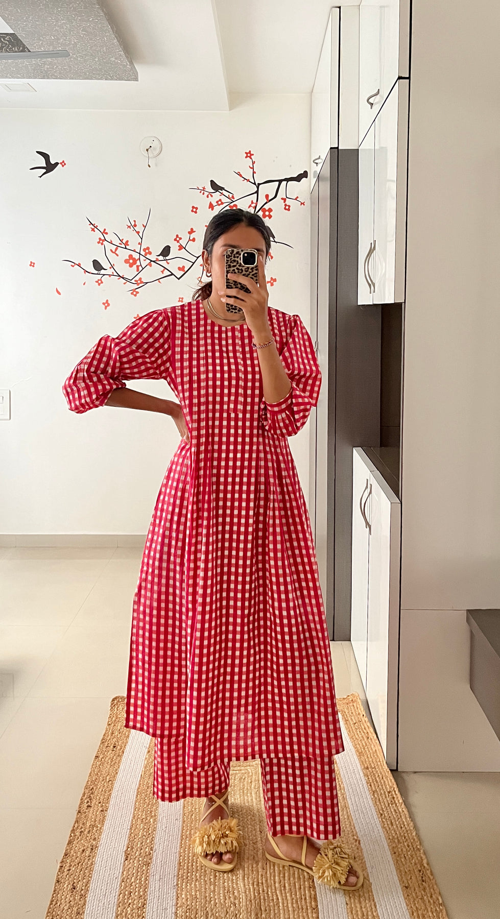 Natural-dyed colours might bleed during the first few washes or rub against the skin & other light-coloured garments. In the artful process of hand block-printing, embroidery work and stitching, variations are likely to come into existence. These irregularities are the hallmark of all handmade products and give each style a unique identity.