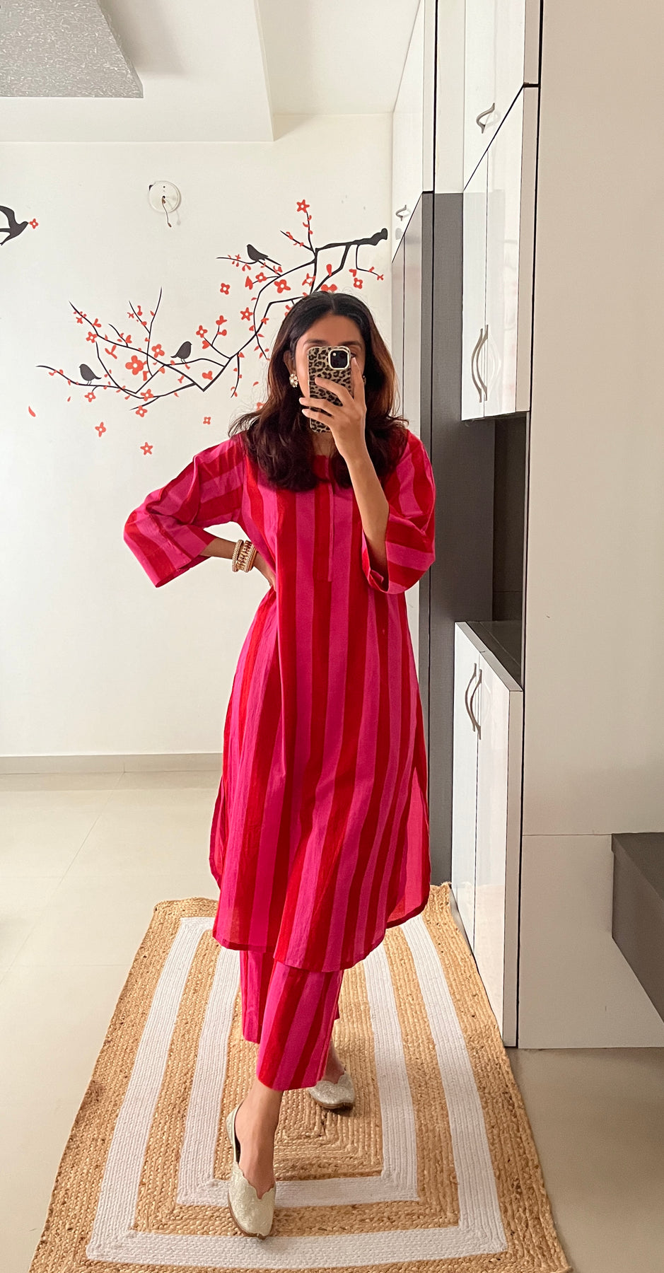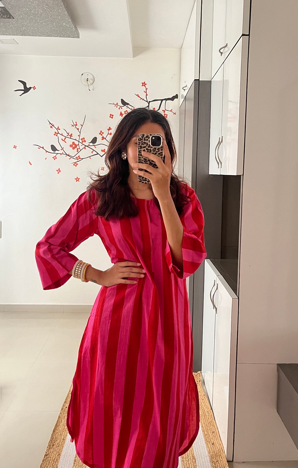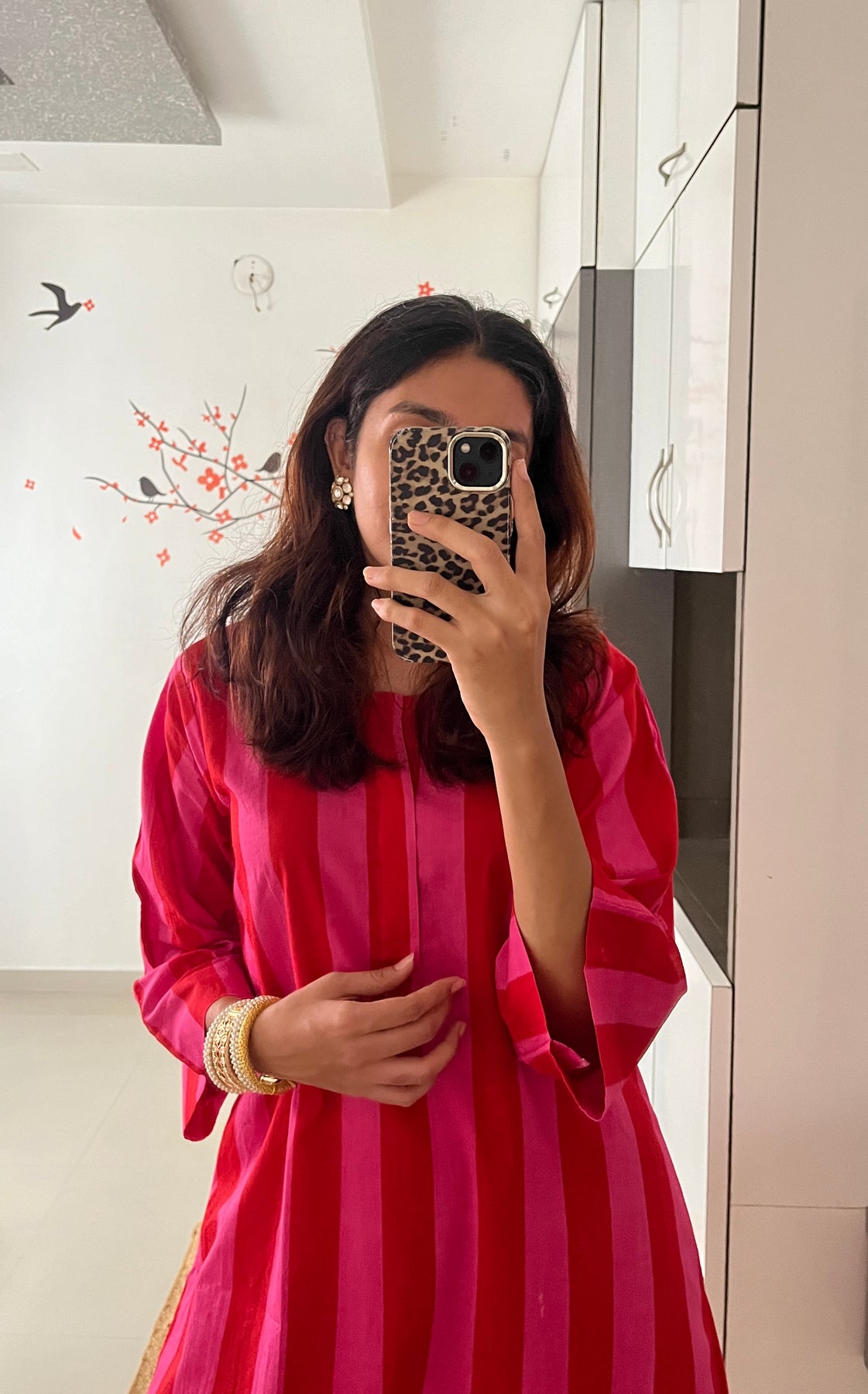 Natural-dyed colours might bleed during the first few washes or rub against the skin & other light-coloured garments. In the artful process of hand block-printing, embroidery work and stitching, variations are likely to come into existence. These irregularities are the hallmark of all handmade products and give each style a unique identity.