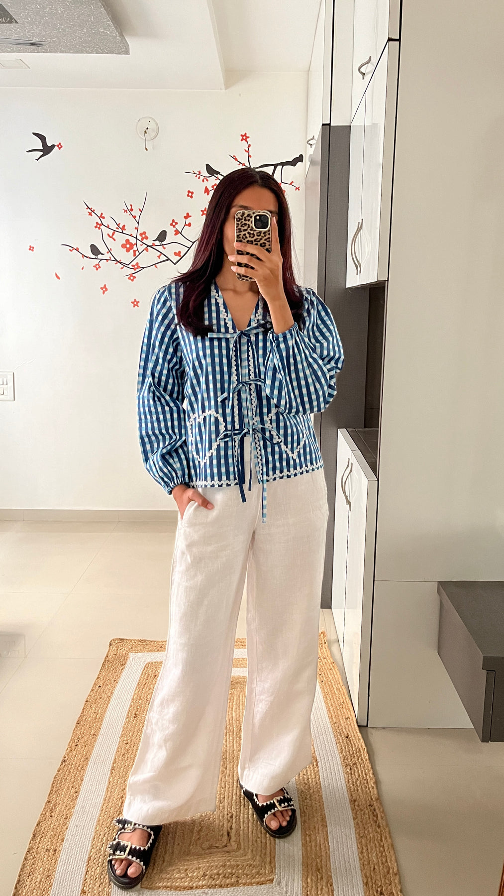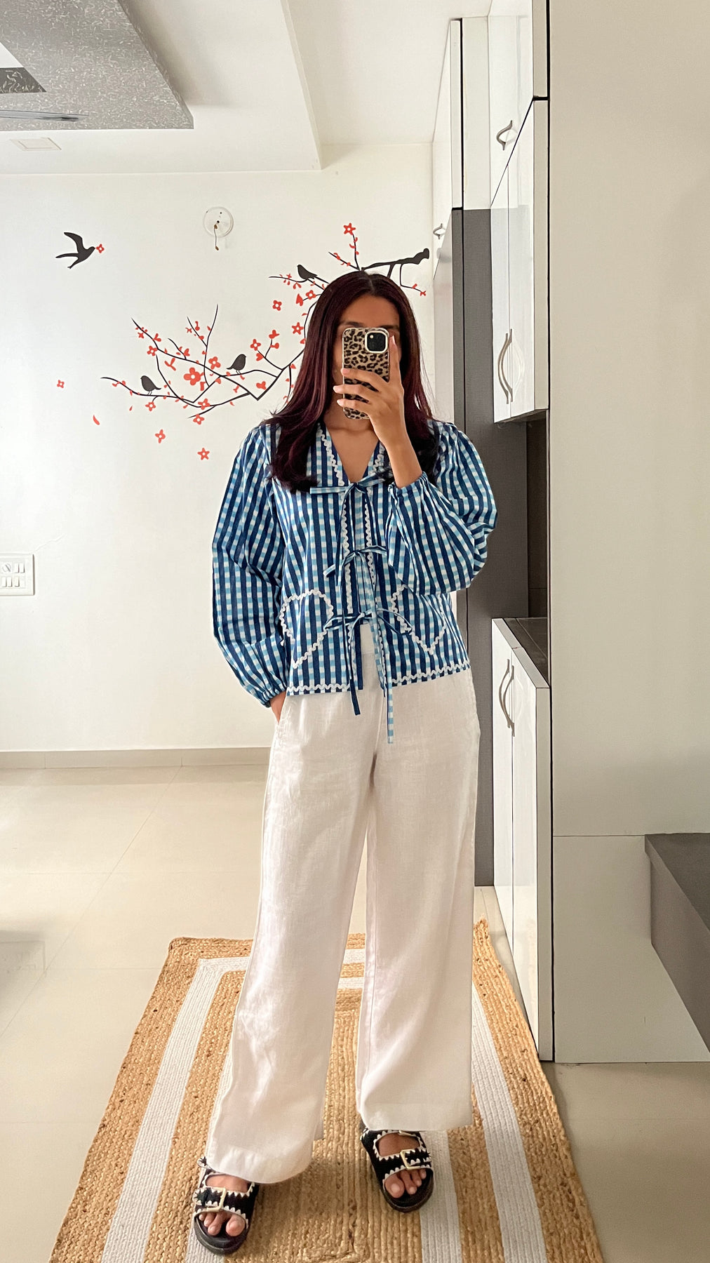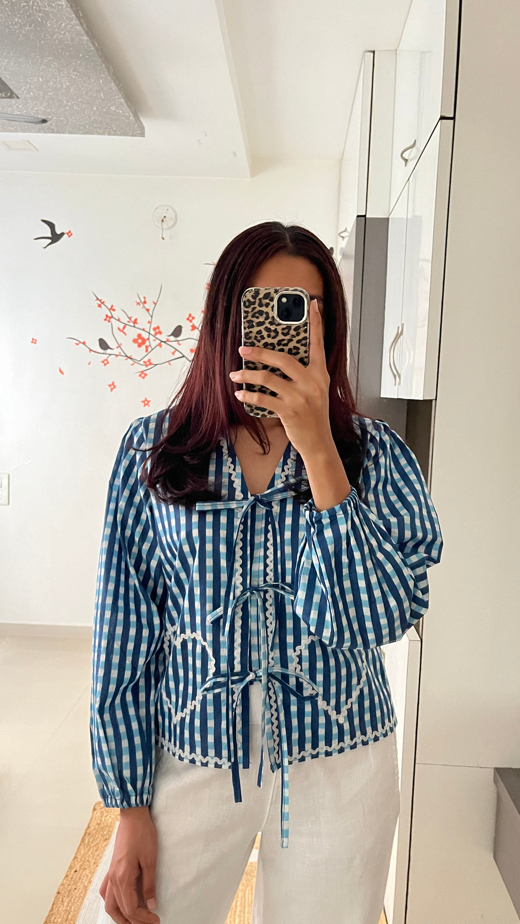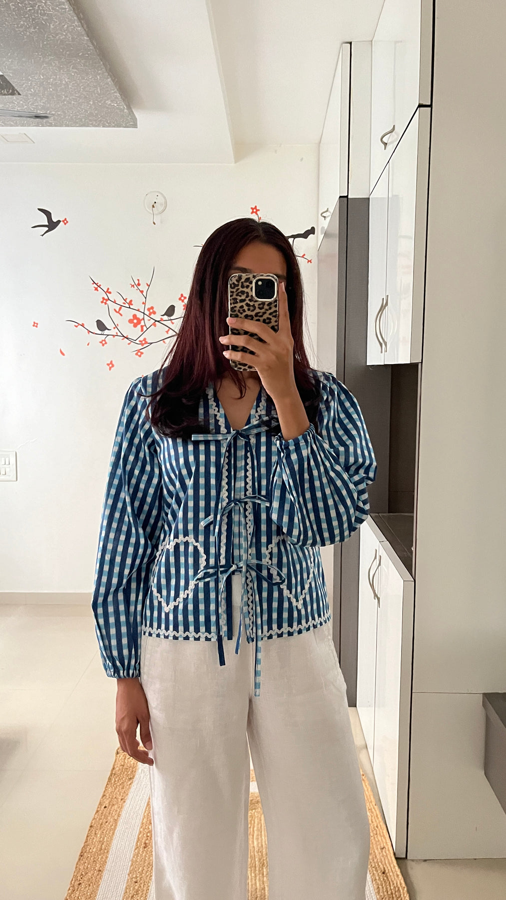 Natural-dyed colours might bleed during the first few washes or rub against the skin & other light-coloured garments. In the artful process of hand block-printing, embroidery work and stitching, variations are likely to come into existence. These irregularities are the hallmark of all handmade products and give each style a unique identity.