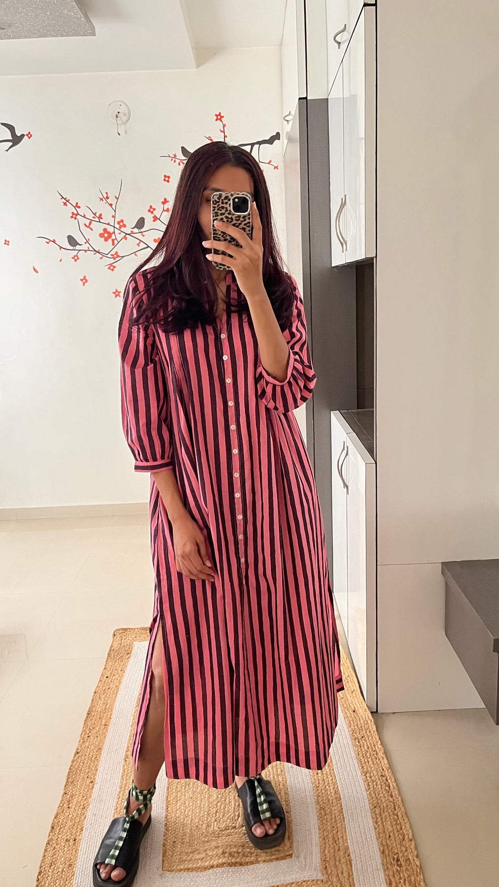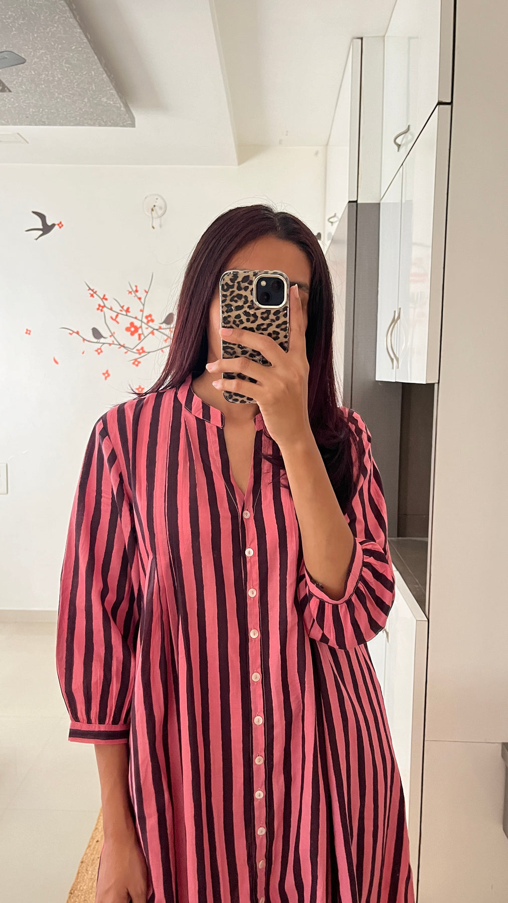 Natural-dyed colours might bleed during the first few washes or rub against the skin & other light-coloured garments. In the artful process of hand block-printing, embroidery work and stitching, variations are likely to come into existence. These irregularities are the hallmark of all handmade products and give each style a unique identity.