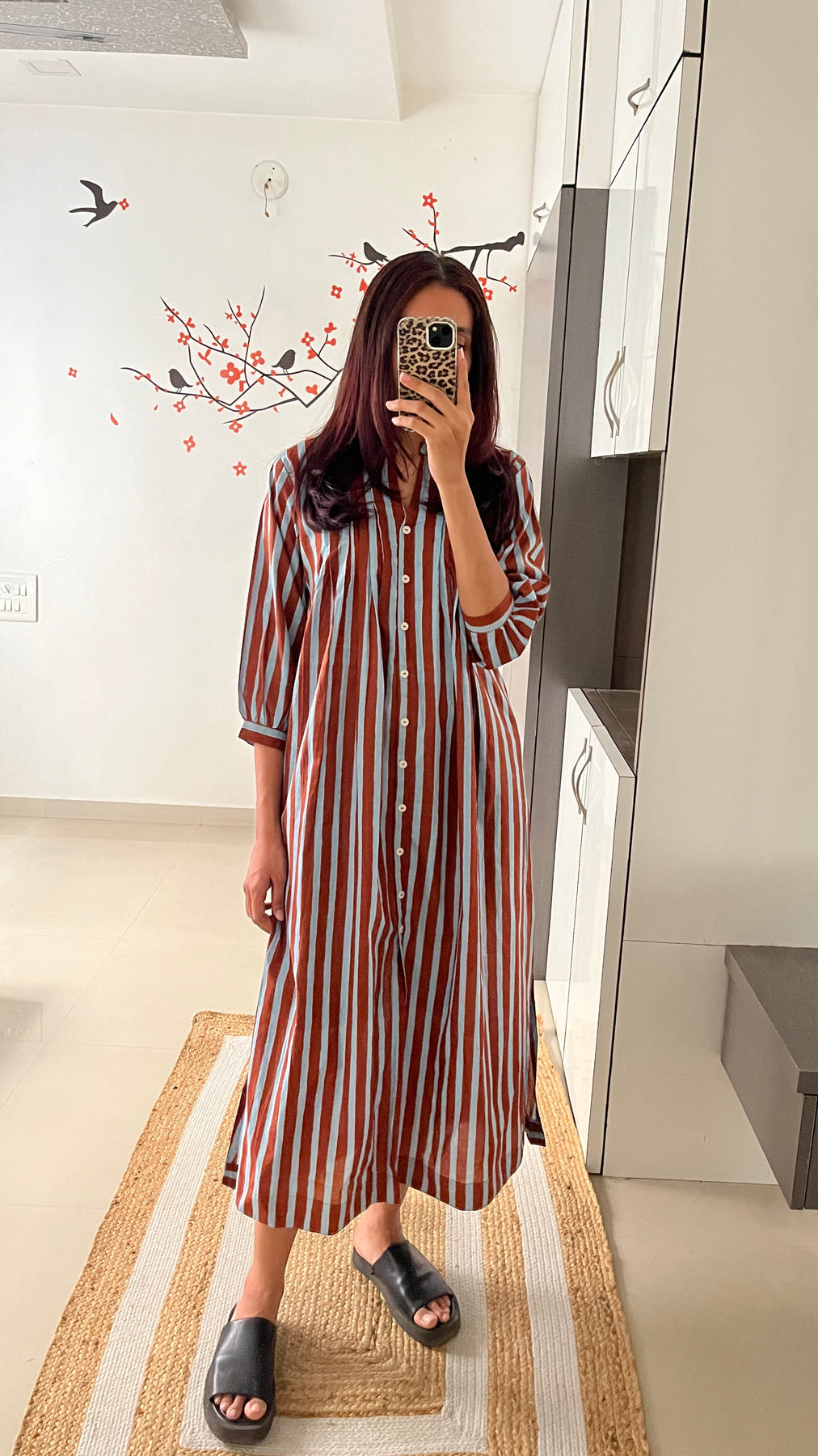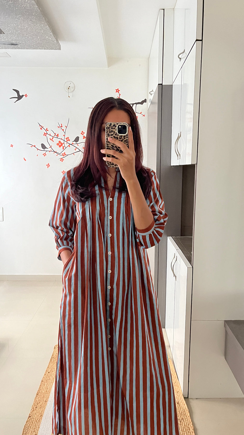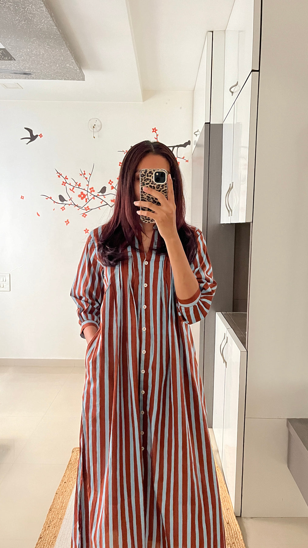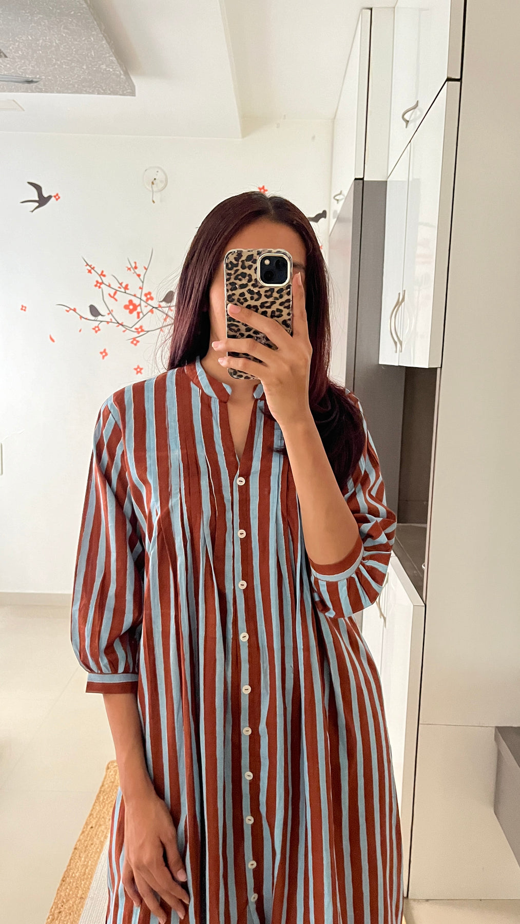 Natural-dyed colours might bleed during the first few washes or rub against the skin & other light-coloured garments. In the artful process of hand block-printing, embroidery work and stitching, variations are likely to come into existence. These irregularities are the hallmark of all handmade products and give each style a unique identity.