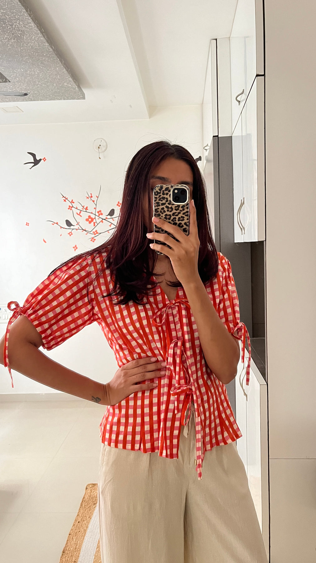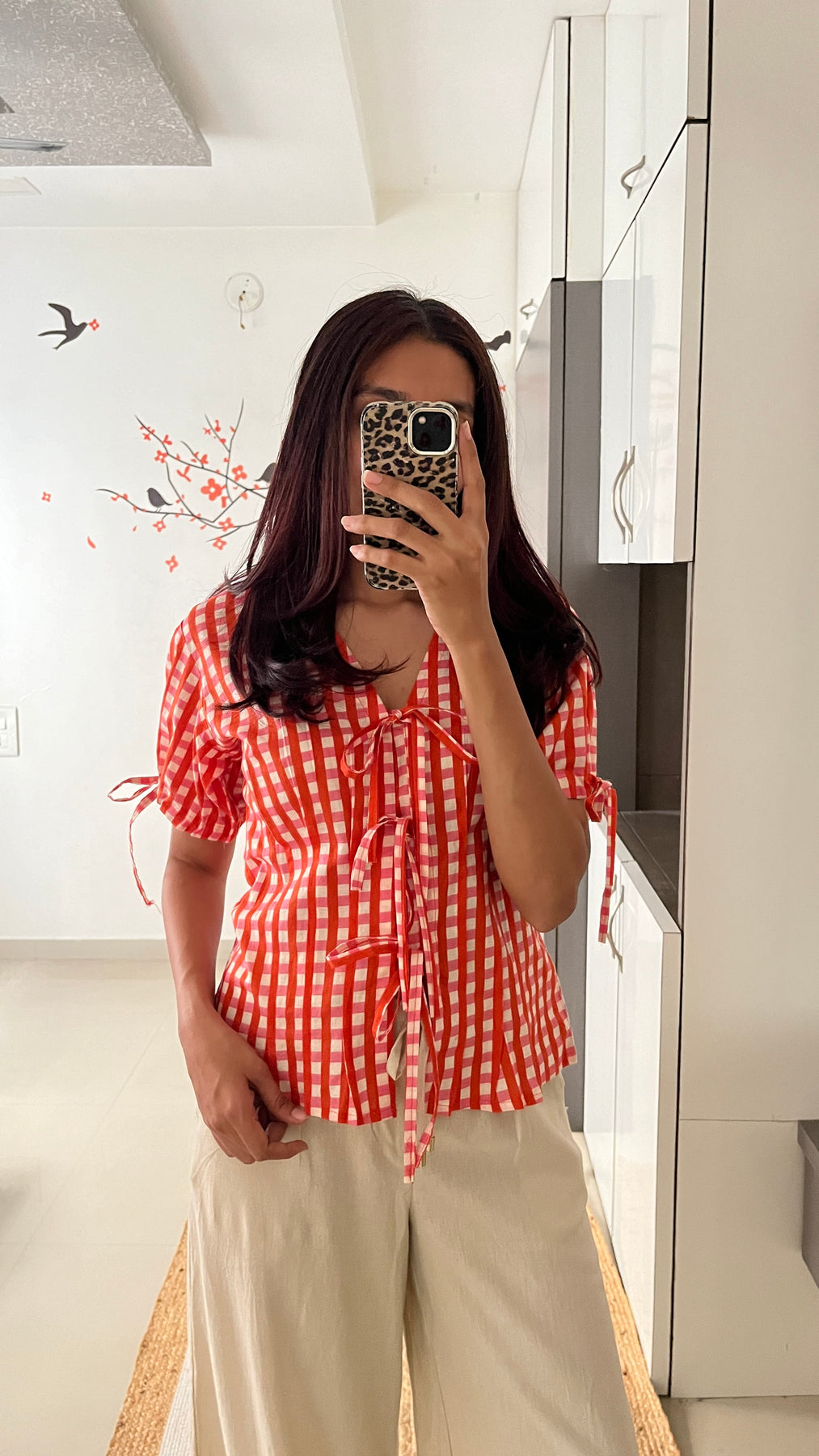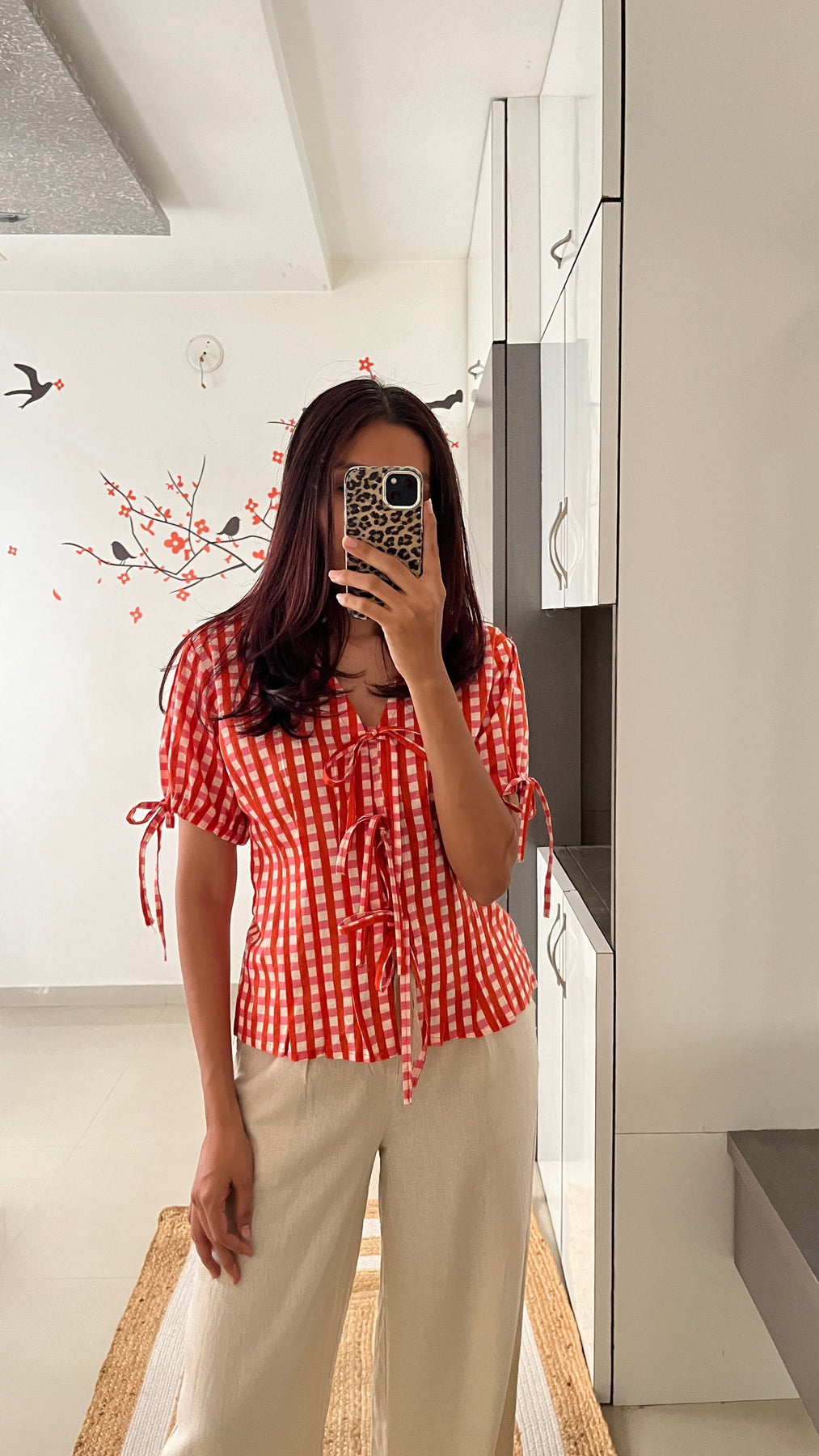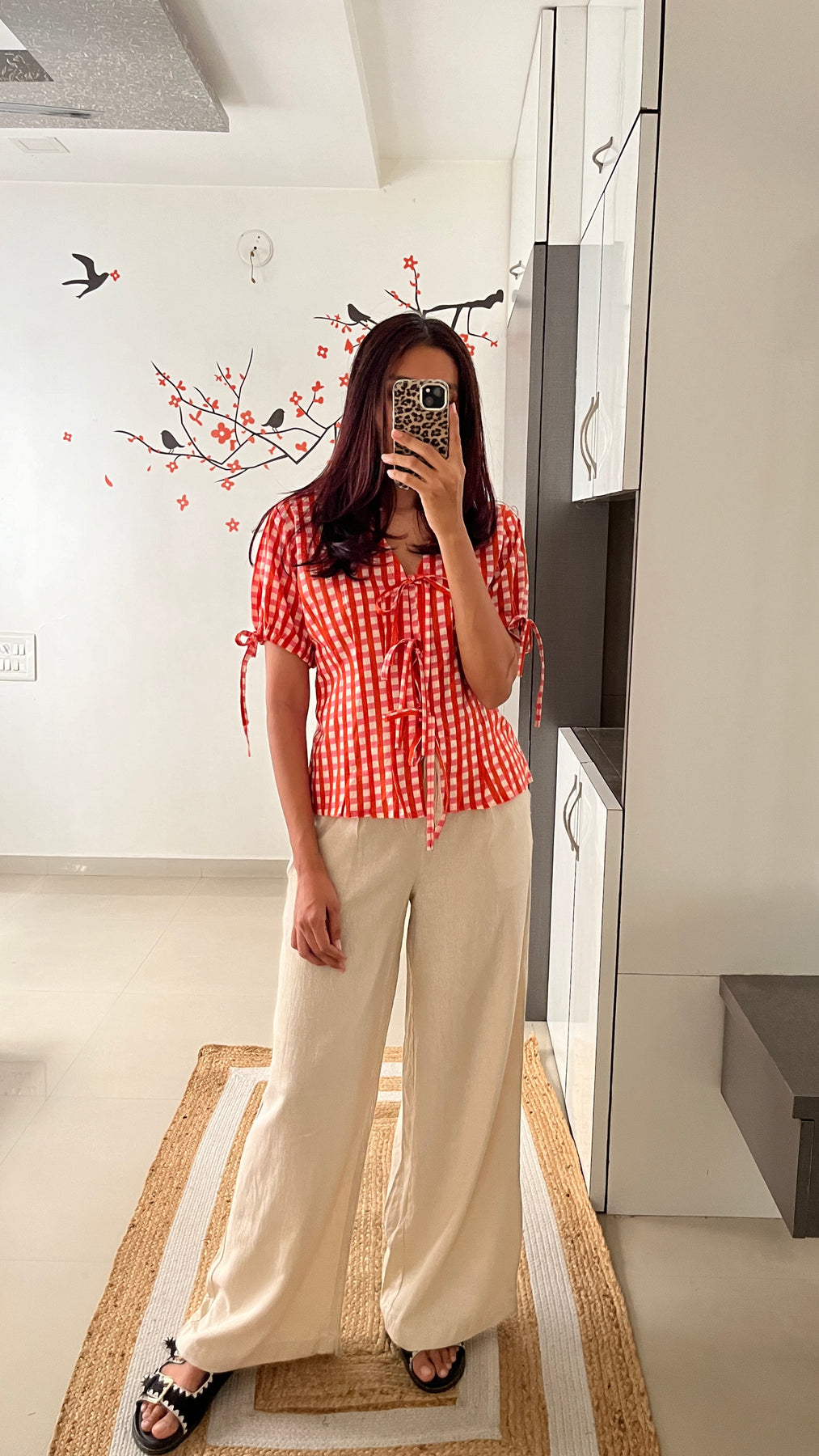 Natural-dyed colours might bleed during the first few washes or rub against the skin & other light-coloured garments. In the artful process of hand block-printing, embroidery work and stitching, variations are likely to come into existence. These irregularities are the hallmark of all handmade products and give each style a unique identity.