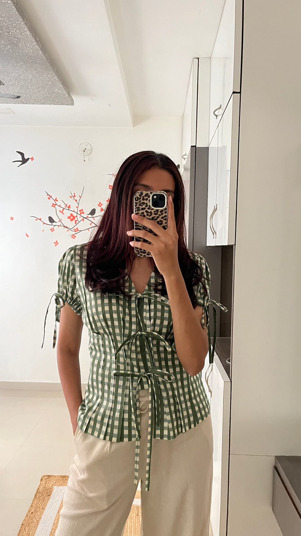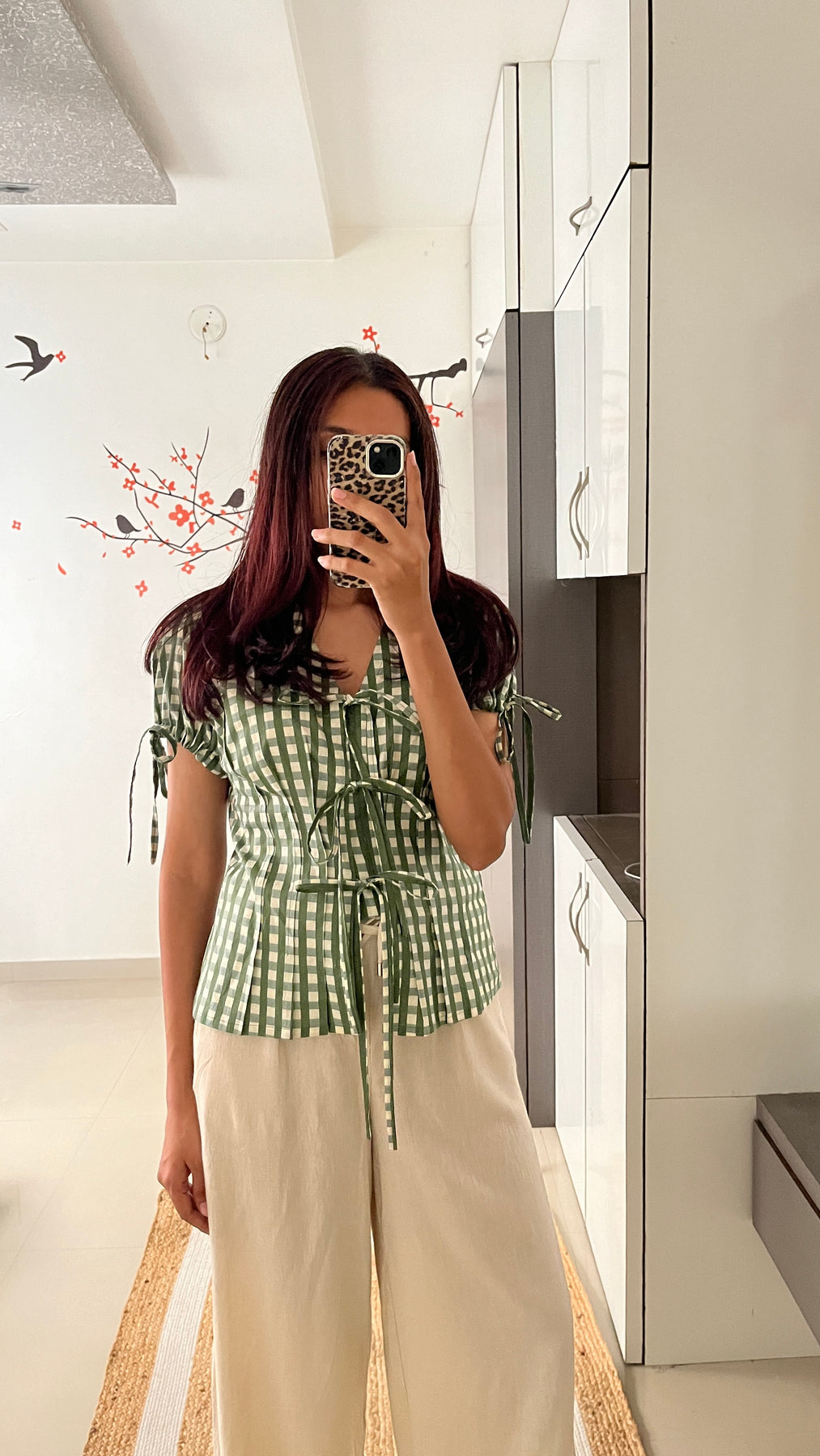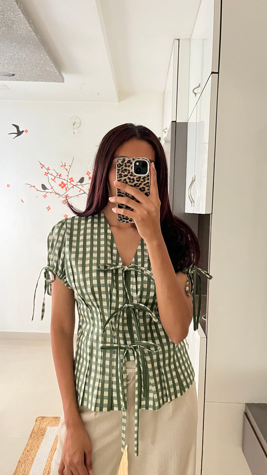 Natural-dyed colours might bleed during the first few washes or rub against the skin & other light-coloured garments. In the artful process of hand block-printing, embroidery work and stitching, variations are likely to come into existence. These irregularities are the hallmark of all handmade products and give each style a unique identity.
